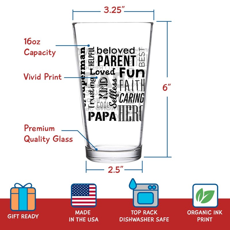 - Artesanía estadounidense: fabricada e impresa en los Estados Unidos con impresión blanca vívida en la parte delantera y trasera, nuestra cristalería es apta para lavavajillas y cuenta con un borde resistente a las astillas