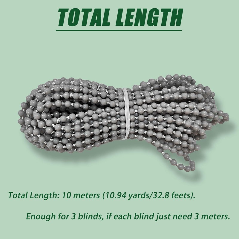 - Package includes: You will get 10 meters blinds blastic bead chains, and 10 pcs ball chain connectors.