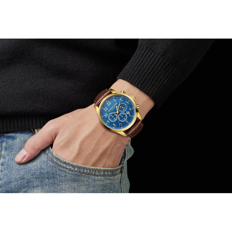 - ๐ช๐๐ง๐๐ ๐๐๐๐ง๐จ๐ฅ๐๐ฆ: Our limited edition quartz chronograph movement PE905-2 timepiece features a stylish Blue dial with 3 chrono eyes and a stainless steel Back & alloy case of measuring 43mm wide. With its seconds, minutes, and 24-hour counter, this watch offers functionality along with its appealing design. Its mineral glass adds a mesmerizing touch, providing a clear view of the intricate movement inside.