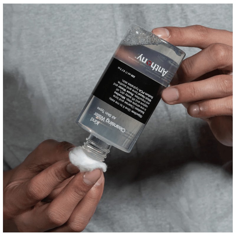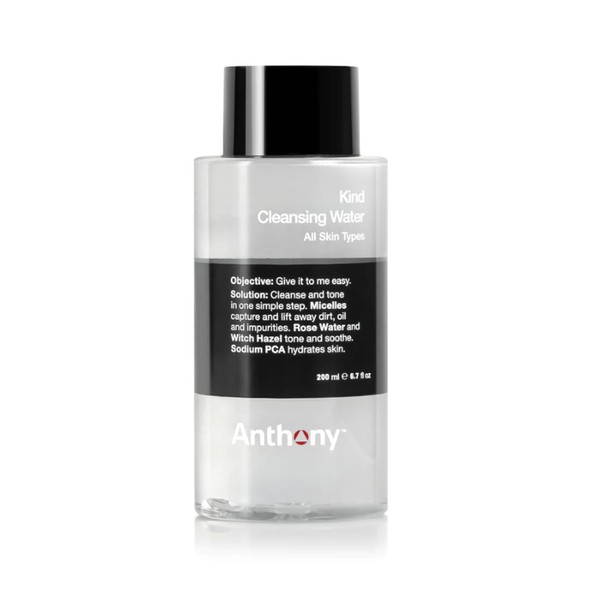 The Anthony Kind Cleansing Water 200ml is a multi-benefit 2-in-1 cleanser and toner that gently lifts away dirt and impurities while balancing, soothing, and hydrating your skin.
