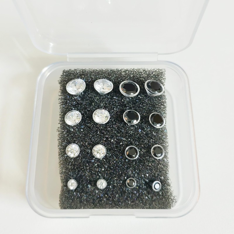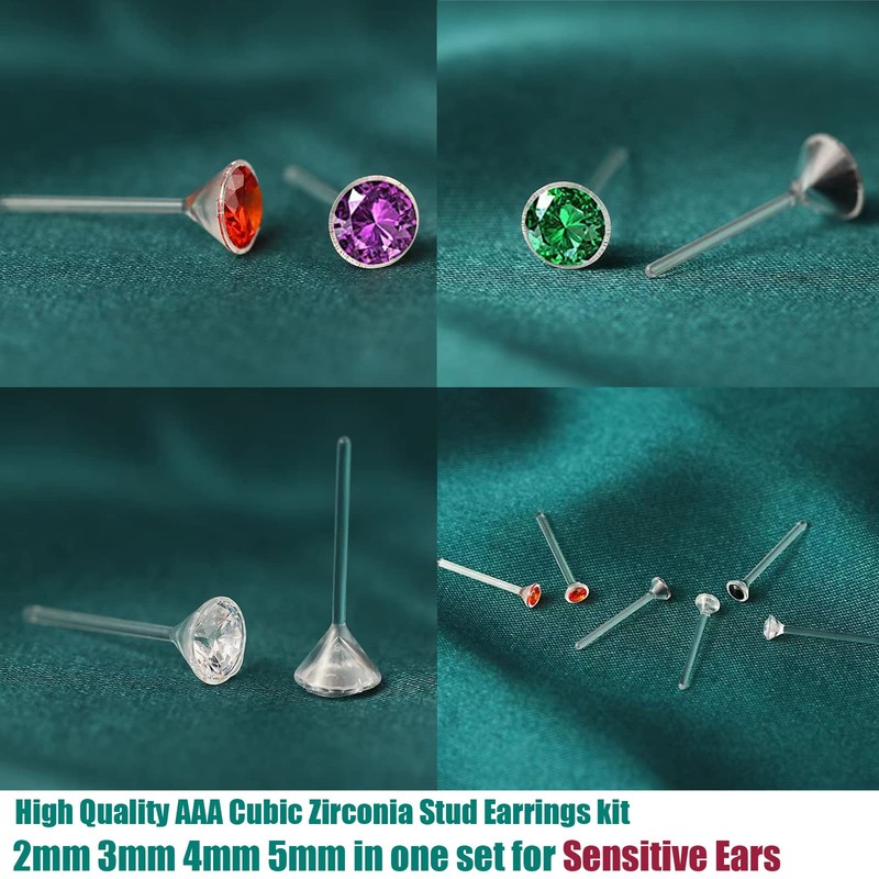 - Cubic Zirconia Studs: The set includes cubic zirconia stud earrings in various sizes (2mm, 3mm, 4mm, 5mm).