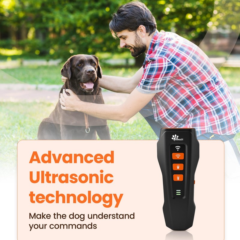 - Ultrasonic Function: This anti-barking device sends two different frequencies of ultrasound through one button, which is more effective and safer than the common single-frequency dog trainers on the market. You can easily train your dog to stop barking, biting, eating unsafe food, fighting and other bad behaviors just by pressing the button.