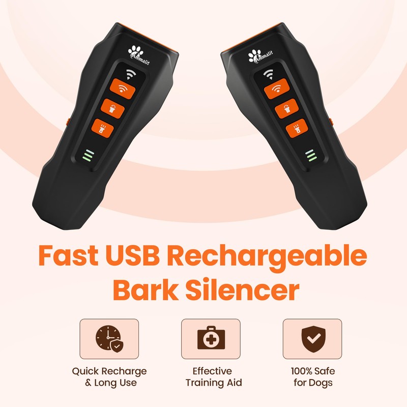 - USB Quick Charge:This rechargeable bark silencer has a built-in 1200 mAh battery that can be quickly charged in 2.5 hours by any standard USB device (such as USB adapter, charger, laptop, car charger, etc.).