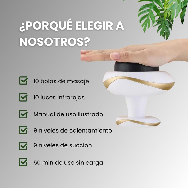 Discover the revolution in skincare with the Cellulite Massager from Vacumapia Cellucare! Designed to offer you professional treatment in the comfort of your home, this advanced device combines cutting-edge technology. Featured Features: Vaccumultherapy Technology: This massager uses vacuum suction to stimulate circulation and help reduce the appearance of cellulite, giving you smoother and firmer skin. Infrared Light and Warming: Infrared light penetrates deep layers of skin, improving elasticity and promoting cell regeneration. The warm-up function relaxes muscles and enhances the benefits of treatment. Digital Display and Custom Controls: Easily adjust suction and temperature through its intuitive digital display. Customize your treatment to suit your specific needs. Long-lasting rechargeable battery: With a battery life of up to 50 minutes, you can enjoy full sessions without interruption. Plus, its wireless design gives you complete freedom of movement. PORTABLE AND EASY TO USE - Compact and lightweight, this massager is perfect to use at home or take it with you on your travels. Its ergonomic design ensures comfortable and easy handling. Benefits: Visible Cellulite Reduction: Experience tighter, firmer skin with regular treatments. Improvement of circulation: stimulates blood and lymphatic flow, favoring the elimination of toxins. Body firming sagging: The combination of suction and heat relieves muscle tension, providing a feeling of well-being. Cell Regeneration: Infrared light promotes collagen production, improving skin texture and elasticity. Includes: Marce Cellucare Anti-Cellulite Massager USB Charging Cable Detailed User Manual Why Choose Cellucare: Cellucare is dedicated to delivering innovative and effective beauty solutions. Our anti-cellulite massager is the result of years of research and development, ensuring a high quality product that meets the most exacting standards. Don't wait any longer to transform your skin! Add the Cellulite Cellulite Massager from Cellucare to your cart and enjoy a professional beauty treatment at home. Your journey to softer, more radiant skin begins today.
