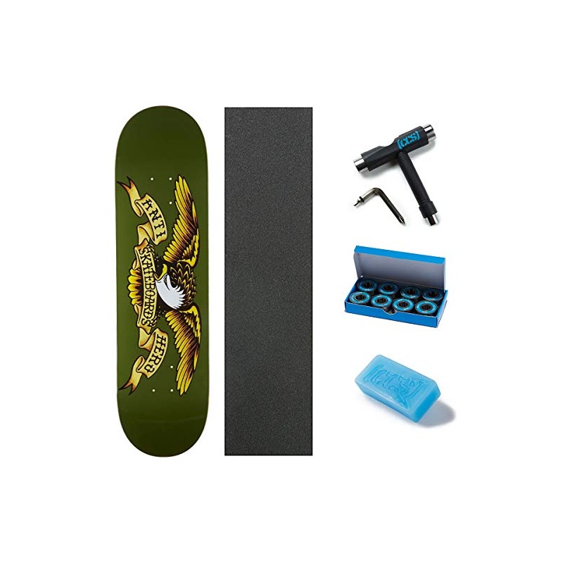 Anti-Hero Classic Eagle Skateboard Deck - Dark Green - 8.38" W/Mob Grip, CCS Skate Tool, Wax, and ABEC 7 Bearings