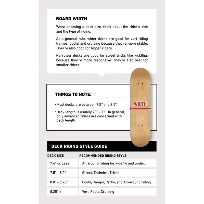 - → Includes: Skateboard deck, Mob Grip tape (sheet, unapplied), CCS Skateboard tool, wax, and ABEC 7 bearings.