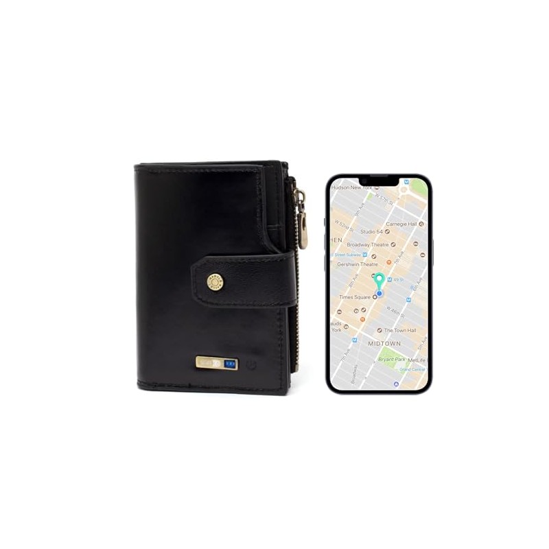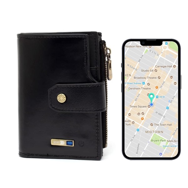 Anti-Lost Bluetooth Wallet Tracker & Finder, Minimalist trackable Wallet for Men, Leather Wallet Credit Card Holder (Leather Black)
