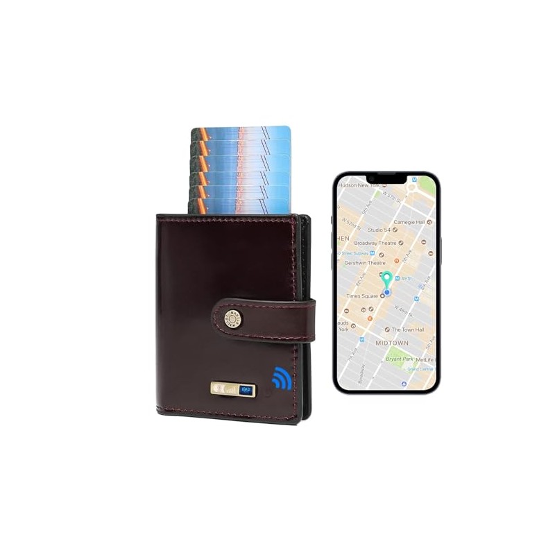 Anti-Lost Bluetooth Wallet Tracker,Trackable Wallet for Men with Aluminum Cardholder Mens Slim,Leather Mens Wallet with ID Window Credit Card Holder Pocket (Burgundy)