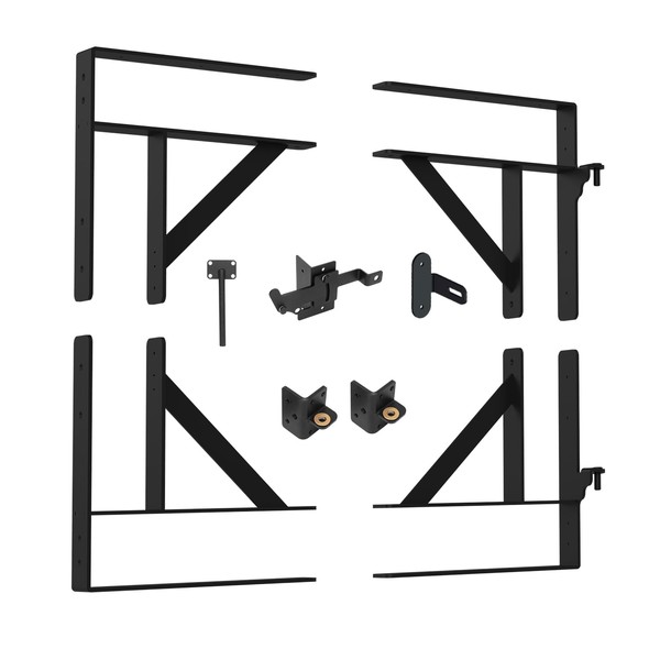 • Package Includes: 4 heavy-duty brackets (2 with hinges), 1 latch kit, 10 round-head wood screws (for mounting the latch kit), 50 flat-head wood screws (for assembling the brackets)