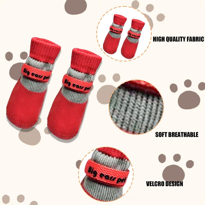 Anti Slip Dog Socks Boots, Dog Shoes for Paw Protection, Rain Snow Dog Booties Anti-Slip Dog Sock Paw Protector for Small Medium Dog Puppy (Red, 6 lb)
