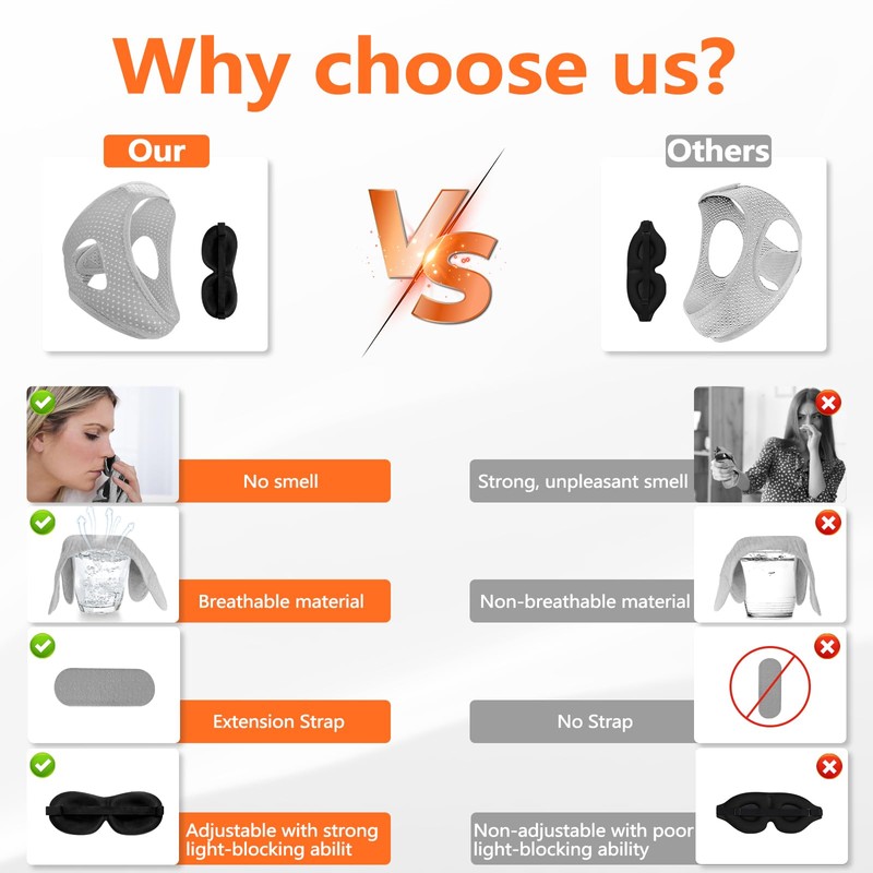 - Effective anti-snoring solution: Are you looking for an effective way to deal with snoring? This anti-snoring chin strap may be your savior. It can securely hold your chin in place, keep your mouth closed, and improve airflow in the throat, making breathing smoother. This method can effectively reduce or eliminate snoring, allowing you to enjoy peaceful and comfortable sleep at night.