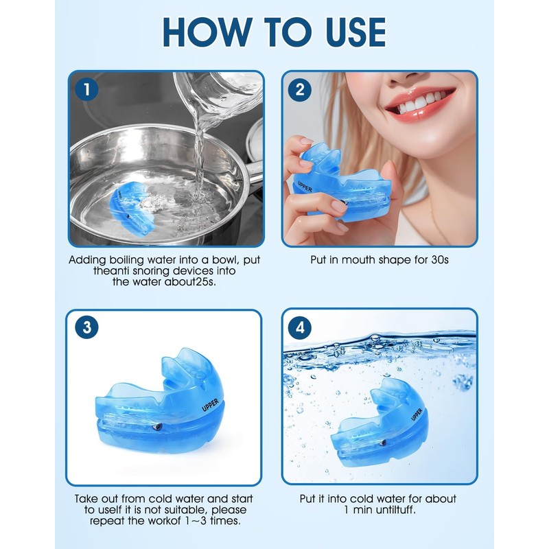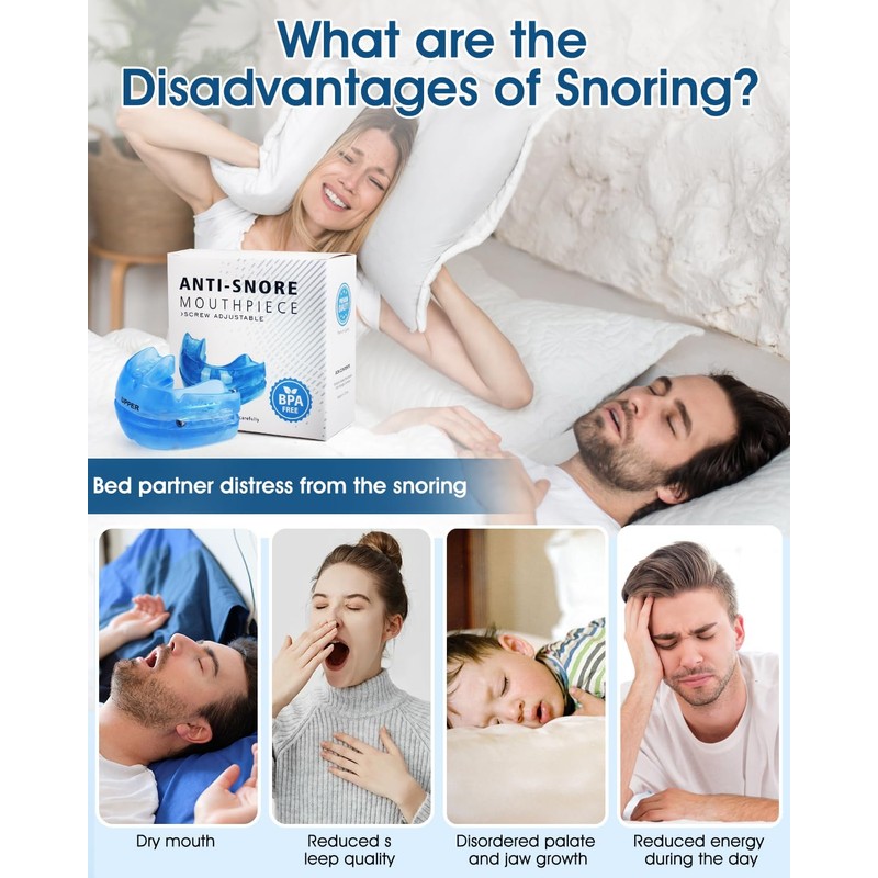 - 【Solves the problem of snoring & teeth grinding】Snoring stopper device can cope with both night grinding and snoring, and the double effect improves sleep, reduces wear and noise nuisance, so you and your family can enjoy a better sleeping experience.