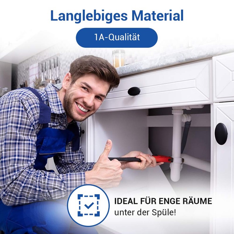 - Easy installation: thanks to standardized dimensions and well thought-out construction, the 1 1/2 inch siphon or sink siphon can be mounted quickly and safely – also suitable for DIY enthusiasts