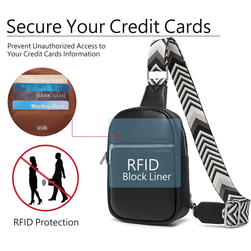 - RFID PROTECTION: Featuring an RFID blocking liner, this small sling bag safeguards your cards, driver's licenses, IDs, and personal information from unauthorized scans, whether you're traveling, shopping, or daily use