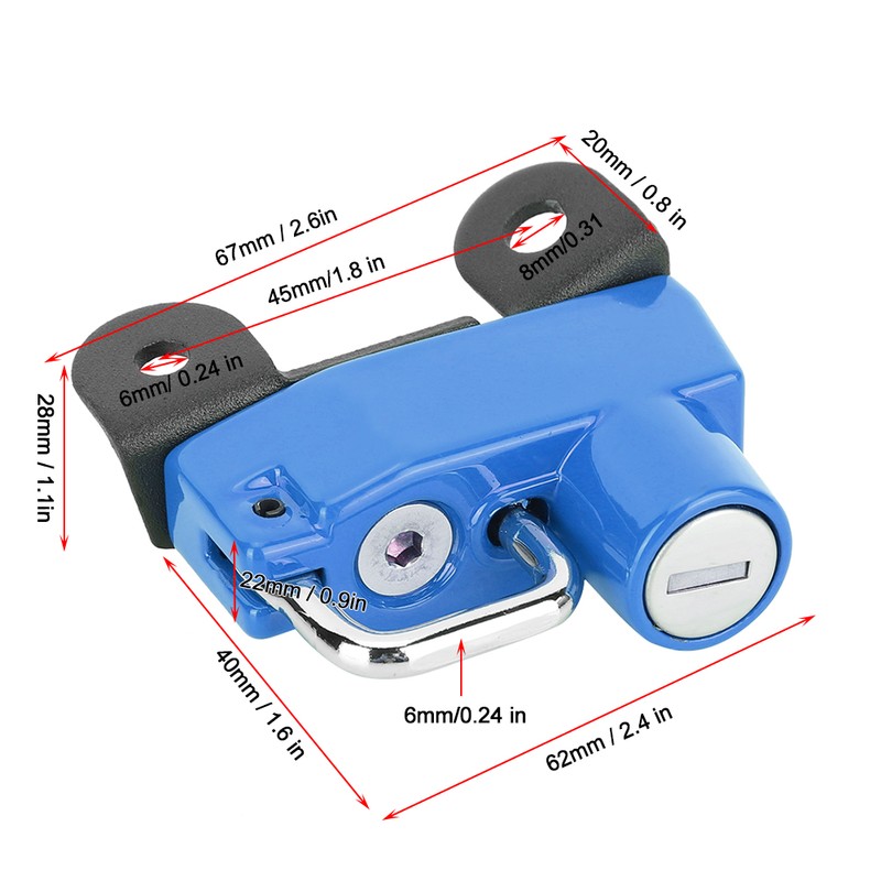 Flat Helmet Lock Size: Approx. 62mm x 22mm x 40mm/2.4 x 0.9 x 1.6 in