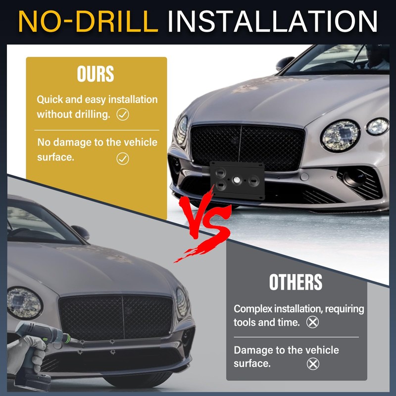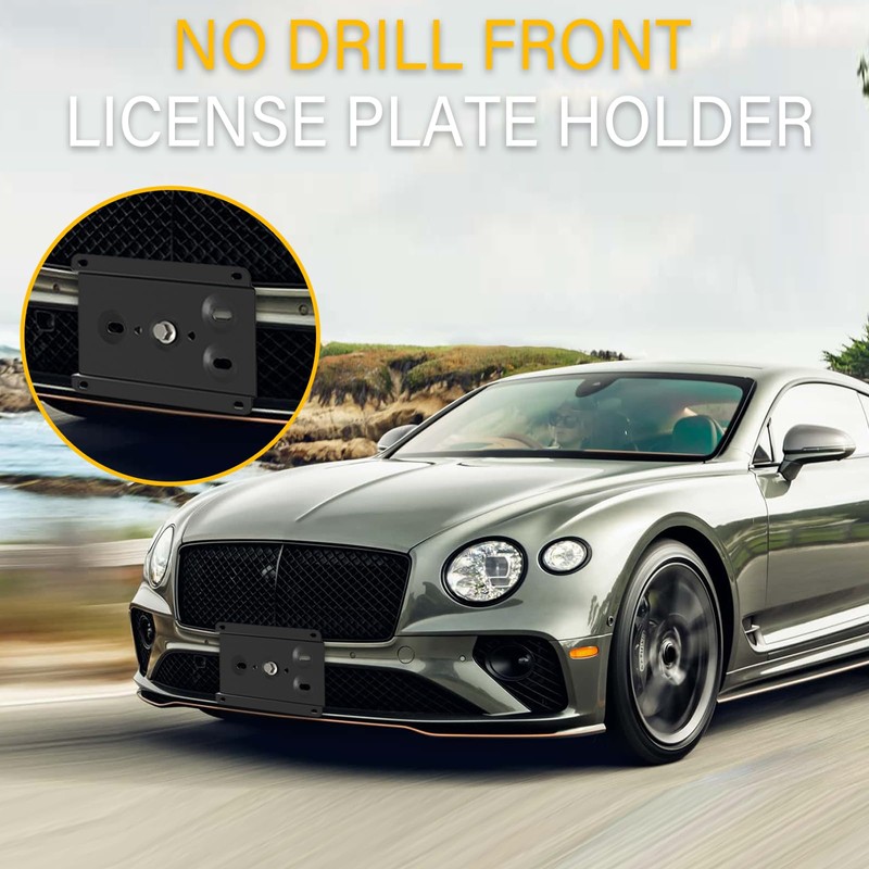 Anti-Theft License Plate Holder Compatible with Bentley Continental 2001-2024, Flying Spur 3rd gen 2020-2024, Front Grille License Plate Bracket Mounting Kit, No Drill Bumper Frame