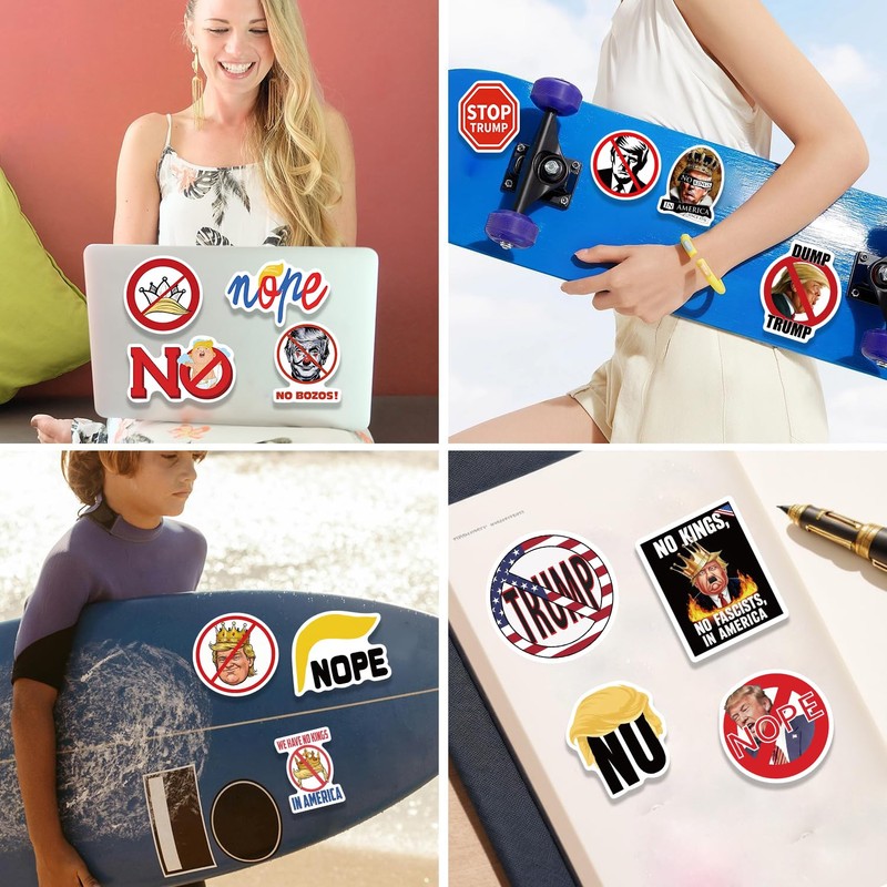 Anti Trump Stickers No Trump 55Pcs - No Kings Stickers Funny FDT Dump Trump Not My President Against Vinyl Self-Adhesive Decals - Easy Stick Removeable for Bumper Window Tumblers Water Bottles