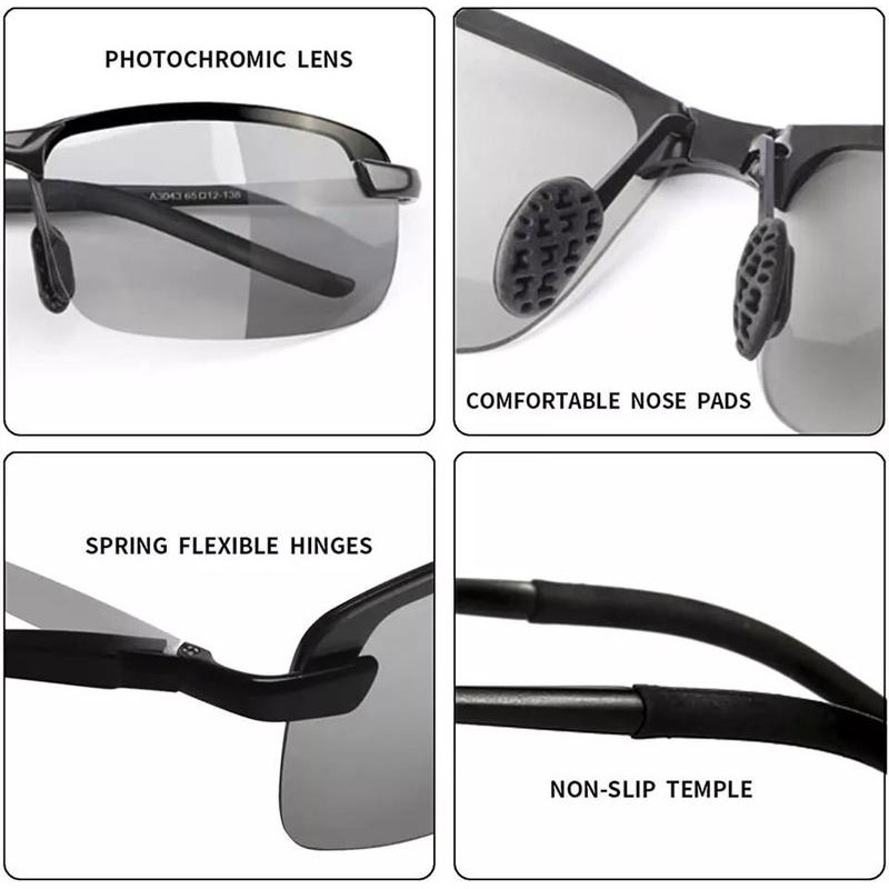 The glasses can change color according to the intensity of ultraviolet light, which has the function of UV protection. And this is a pair of polarizing mirror, can prevent glare, reduce light interference, which can improve the safety of riding and driving, so this glasses is very suitable for riding and driving.