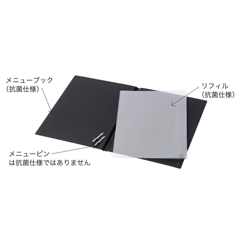 - Set Includes: 1 x Antibacterial Menu Book, 2 x Menu Pins, 1 x Refill
