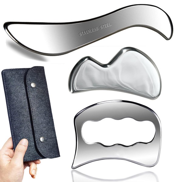 AnTiexi 3 in 1Stainless Steel Gua Sha Tool Set,Muscle Scraper Set -IASTM Tool Great Soft Tissue Mobilization Tool (3pcs Set)