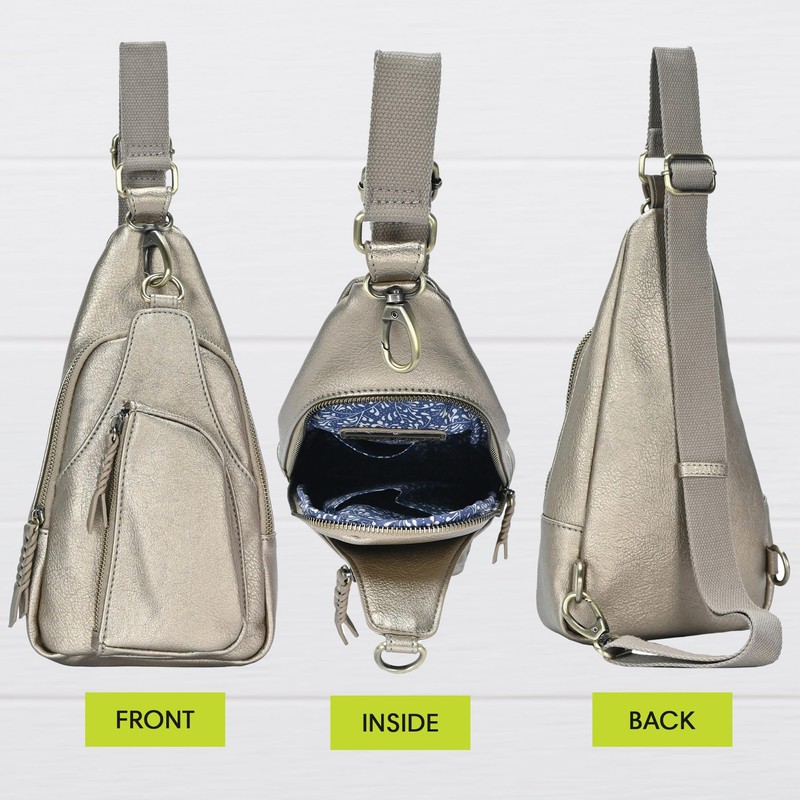 Antik Kraft- The Tasha Crossbody Sling (Metallic) | Vegan Leather Crossbody Bag for Women with 16-20" Strap | Sling Bags for Women with Durable Antique Brass Hardware | 7in x 2.5in x 12.5in |