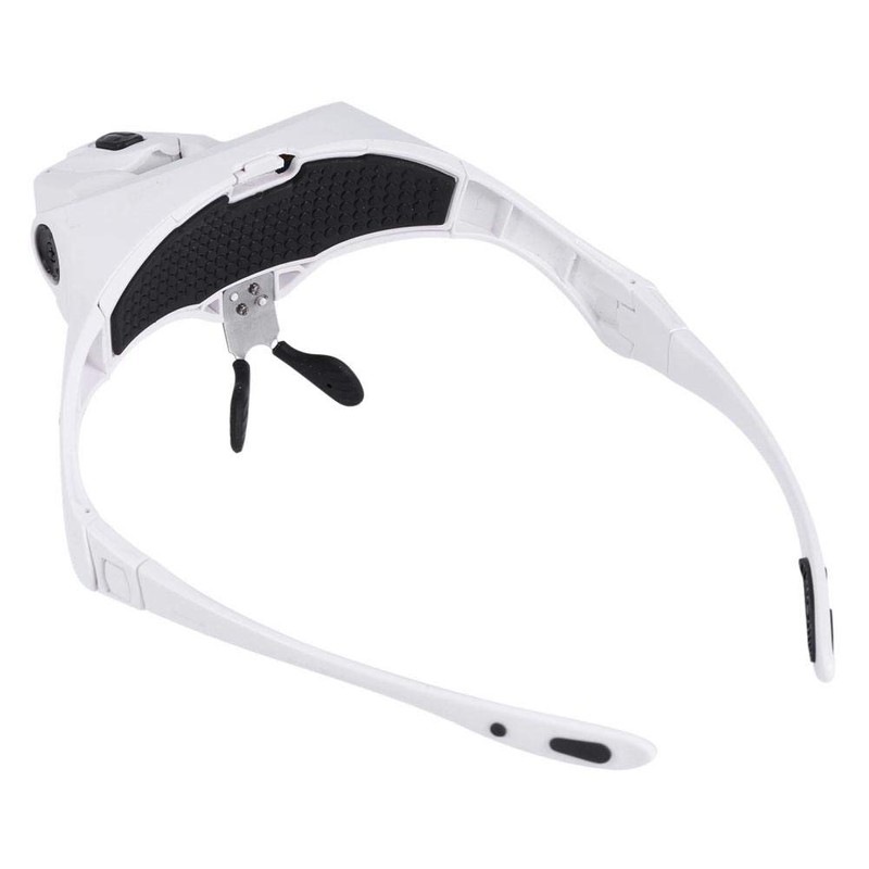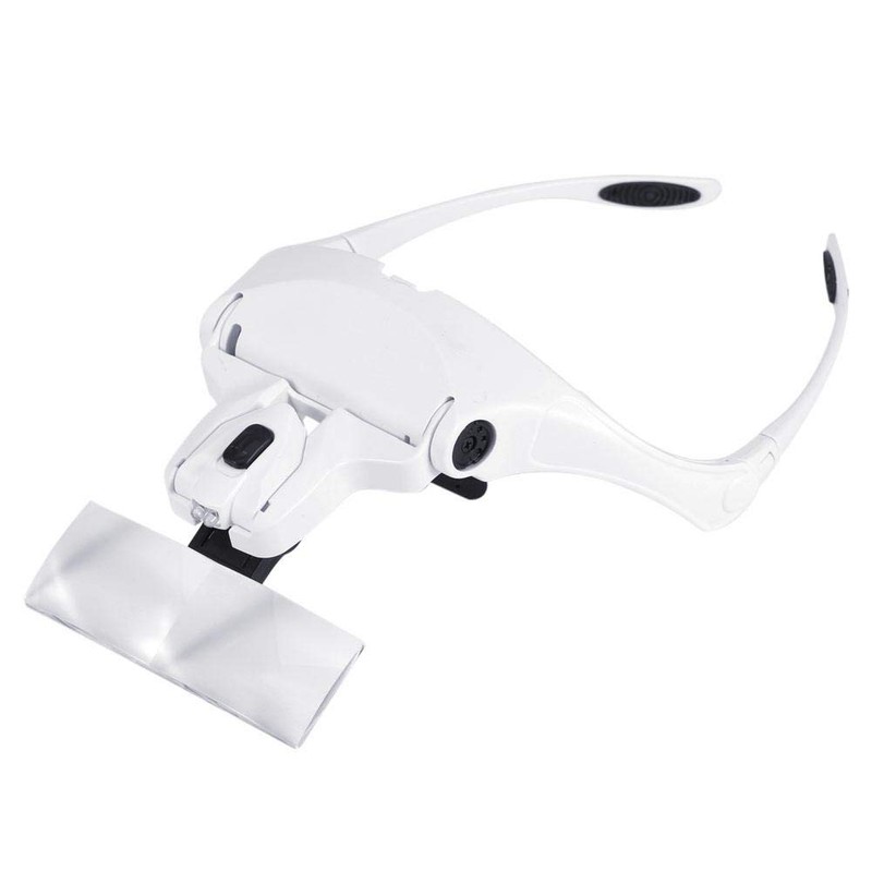 Adopting high quality material, which is lightweight and comfortable to wear. Designed with 2 LED lights on the top front of the magnifier frame, which will help you see clearly even under dark light. Comes with 5 different magnification lens, this will be more convenient to meet your different needs. The lens angle is adjustable, very flexible to use. The soft black head band can help you to fix the magnifier on the head to free your hands and improve your work efficiency. It's a convenient and practical vision aid for those who work with tiny parts and craft designs.