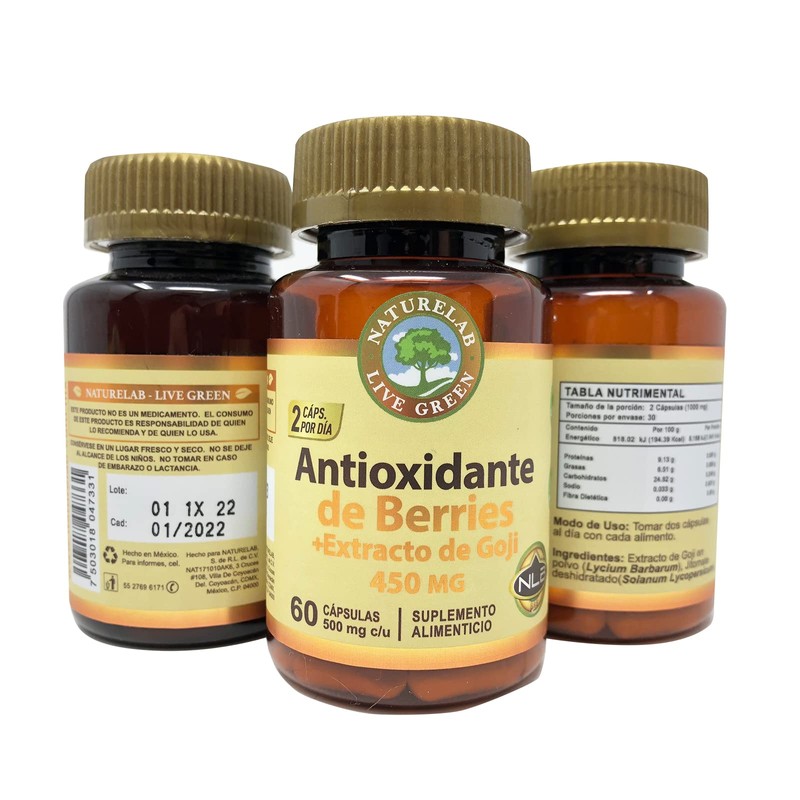 ANTIOXIDANTE DE BERRIES + EXTRACTO DE GOJI 60 CAPS SUPLEMENTO NATURELAB
