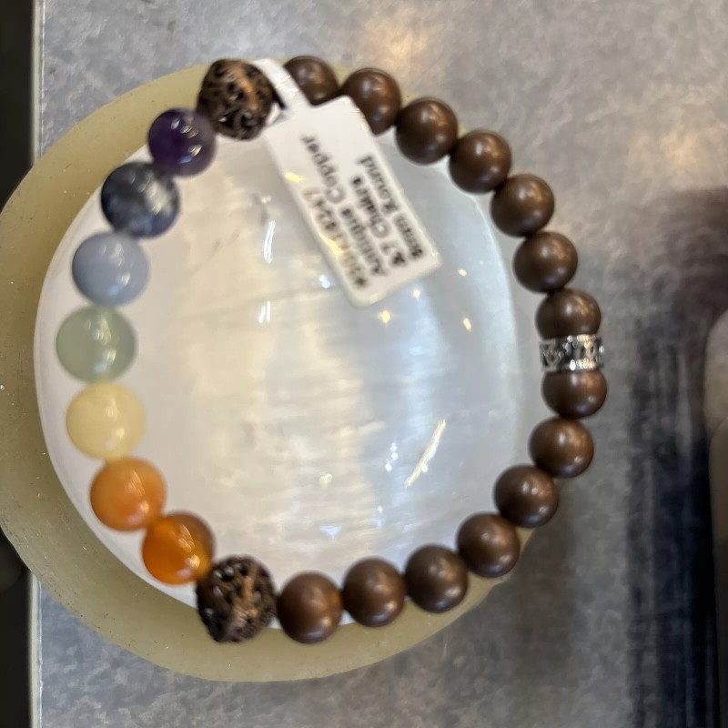 Antique 7 chakra bracelet 8 Mm Rd With Antique Copper
