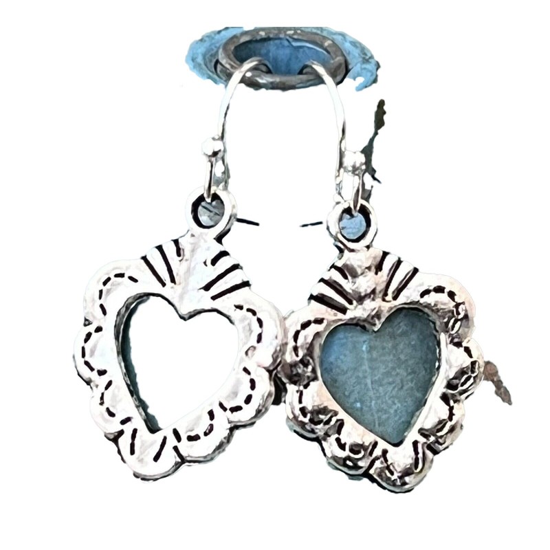 Antique Silver Lacey Heart Dangle Earrings. Love. Romance.