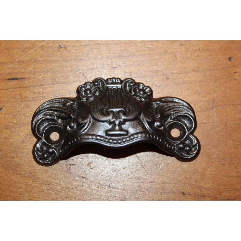 Antique Victorian Cast Iron Detailed Bin Apothecary Cupboard Drawer Pull L-15