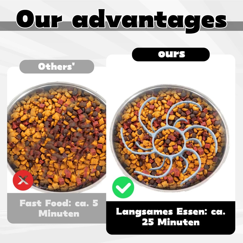 Verbessert die Futteraufnahme-Dynamik, reduziert Stress bei reaktiven Hunden und unterstützt langfristig die Gesundheit durch kontrollierte Nahrungsaufnahme.