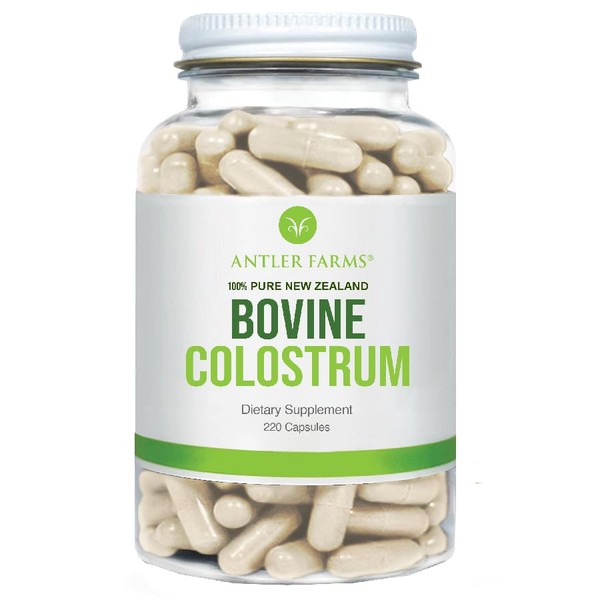 Antler Farms 100% Pure New Zealand Bovine Colostrum, 220 Capsules, 600mg - Grass Fed, Pasture Raised, Clean Sourced, Cold Processed, Undiluted, High IgG Content