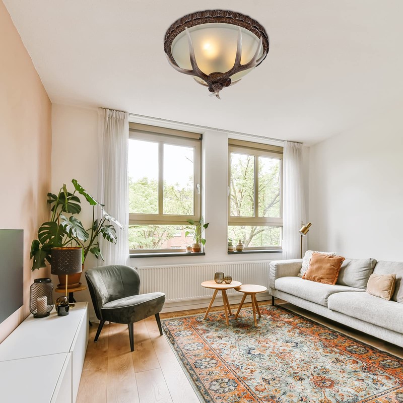 If you want to add some vintage lighting atmosphere to your house, this antler resin ceiling light will be a good choice. The unique antler design makes the fixture feel stylized, and the resin material offers a strong sense of age. This fixture is unique in shape but not abrupt and is suitable for lighting and decorative roles in various environments. It can perfectly integrate with the surroundings and bring a different decorative style. This ceiling light can create a better feeling for your family and add warm decorations.