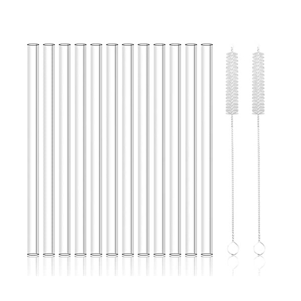 Antner 12 Pack Reusable Glass Straw, 8.5" x 10MM Straight Clear Glass Drinking Straws for Hot & Cold Drinks, 2 Cleaning Brushes Included