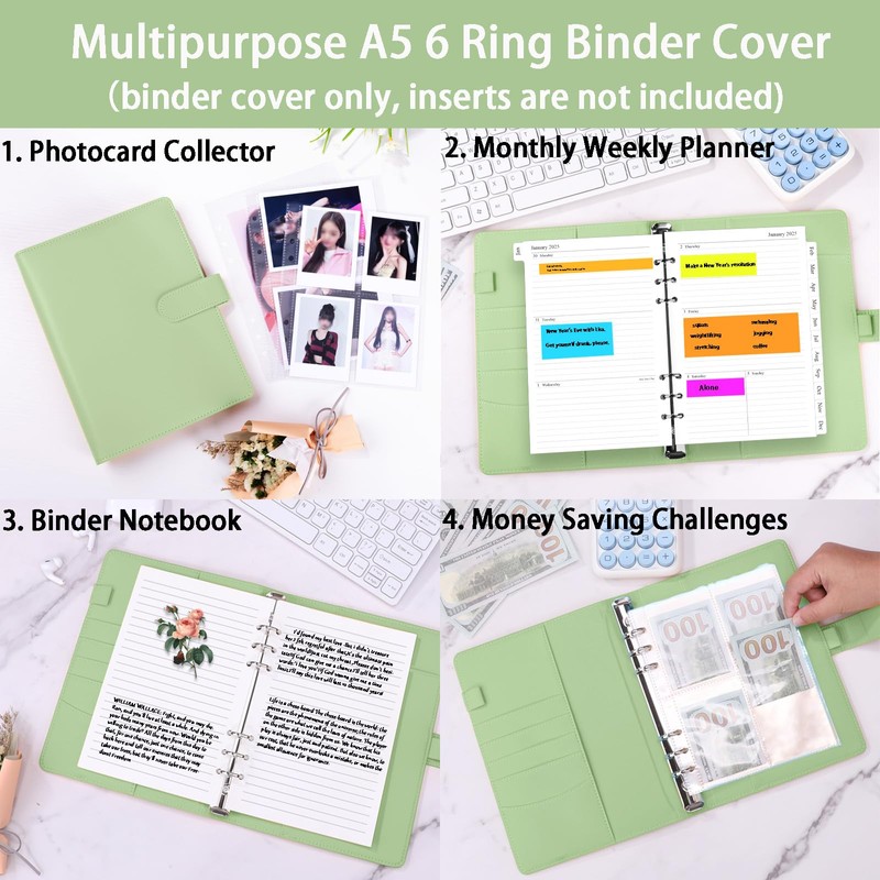 - Versatile Usage: This multi-functional A5 notebook binder serves various purposes, including as a photocard binder, card collector, school notebook, office journal, travel diary, sketch book, memo pad, personal organizer, and budget planner, money saving binder, among others