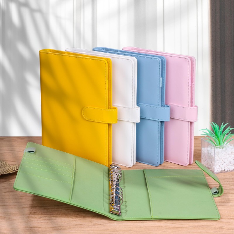 Crafted from premium PU leather in a range of vibrant macaroon colors, the binder cover is not just stylish but also durable and long-lasting. The magnetic buckle closure ensures a secure and effortless opening and closing experience, while the sleek design complements any workspace or bag.