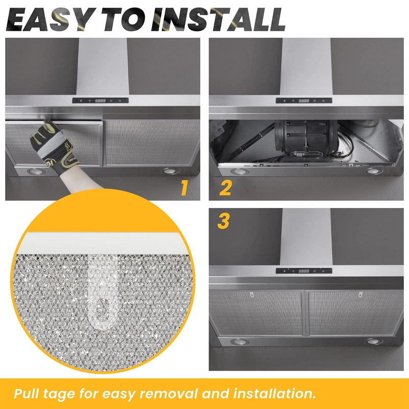 - 【Easy to Install】BPS1FA36 hood range can be easily installed without any tools. It only takes a few minutes to install. The 99010300E compatible with Broan range hood filter is easy removal and installation.