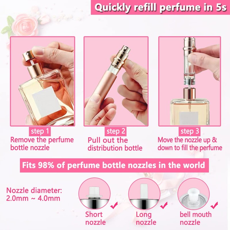 ANTOKX Travel Perfume Bottle Refillable Atomizer - 5ML Perfume Atomiser, Pocket Perfume Dispenser, Leakproof Portable Perfume Sprayer (Black & Gold)