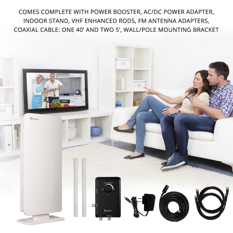 Antop AT-800SBS HD Smart Panel Antenna with Smart Boost System, VHF Enhanced Amplified Indoor Outdoor TV Antenna,Support 2TVs or A Second Device