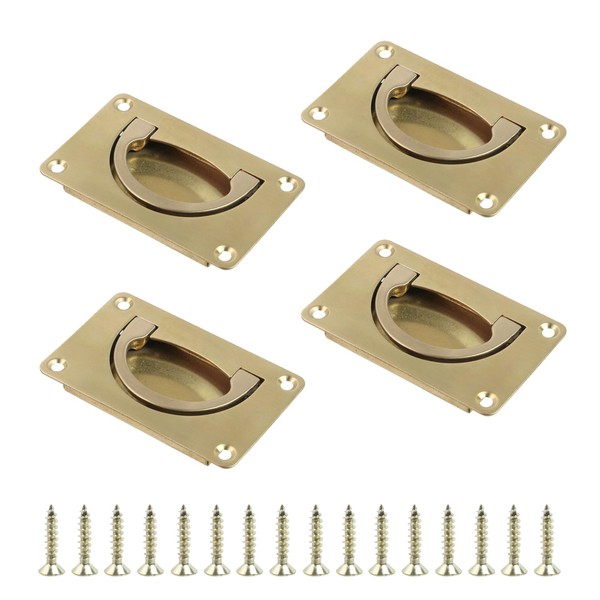 Antrader Boat Ring Hatch Pull Flush Lift,4Pcs Boat Flush Hatch Lift Ring Pull Handle Home Furniture Recessed Handle with Screws,Gold