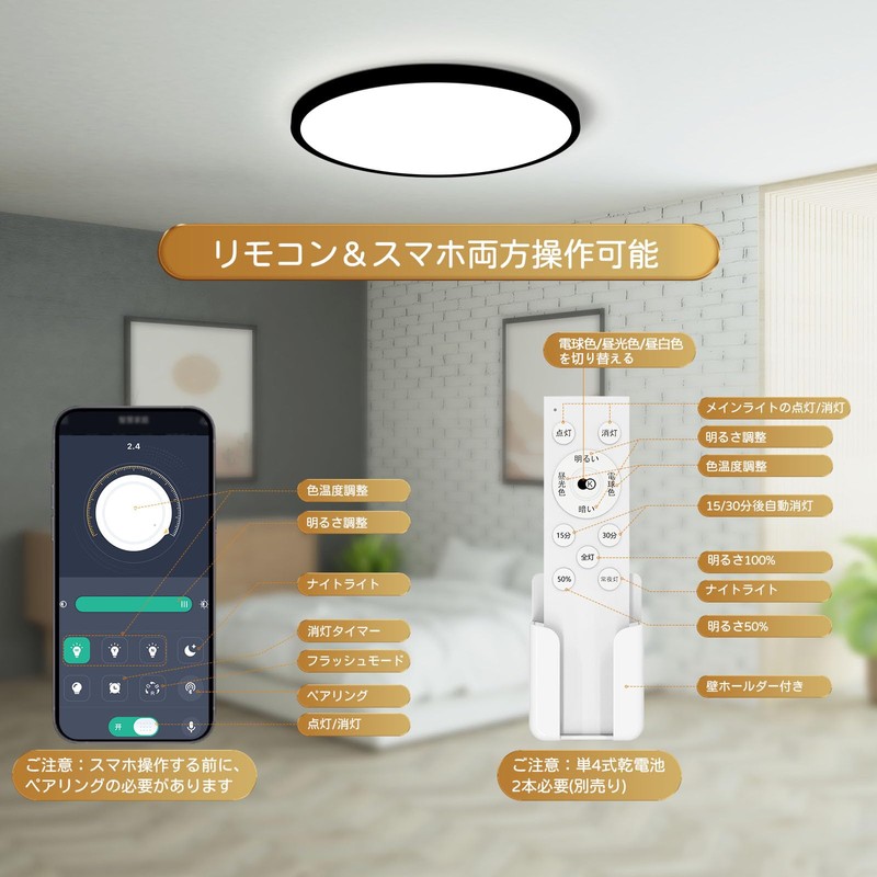 - Energy Saving High Brightness, Thin and Stylish: This LED ceiling light uses a high luminescence rate LED lens, which uses a low power consumption of 24 W to achieve a high brightness of 2,800 lm (brightness is twice as bright as a fluorescent lamp, half the electricity bill), and brightly illuminates rooms from 6 tatami. The ultra-thin design with a thickness of 1.0 inch (2.5 cm) and a black frame combine to create a stylish and wide space