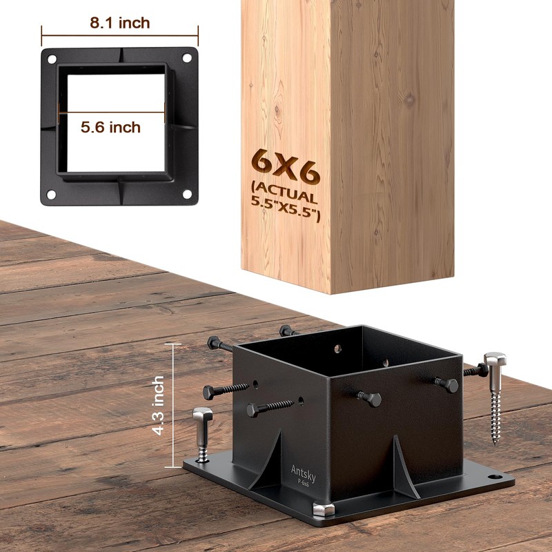 - 【Size】 Fence post anchor baset fits standard 6"x6" (actual 5.5"x5.5") wood post.