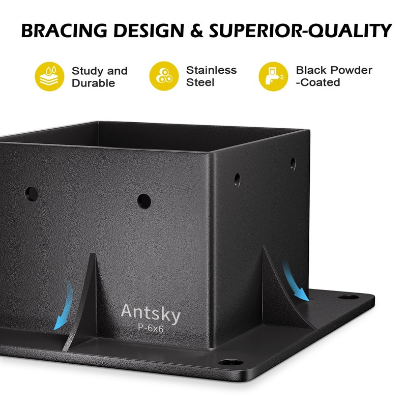 - 【Premium Stainless Steel 】decks post base is made from high-quality stainless steel with black powder coating. This material is anti-rust, corrosion resistant,sturdy. You can use them to build a cozy and beautiful fence, mailbox or pergola for you