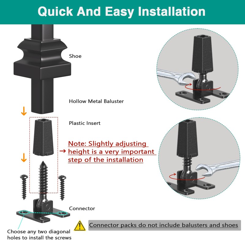 - Applications: These baluster connectors suitable for both top and bottom placement on 1/2" square balusters, adding a touch of uniqueness to your railing setup