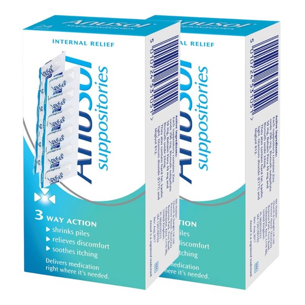 ANUS0L Haemorrhoids Piles Treatment | 24 Suppositories | 2 Pack, 48 Total