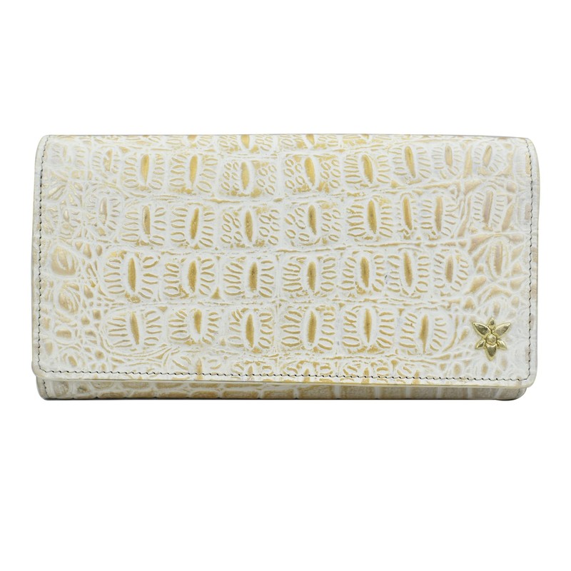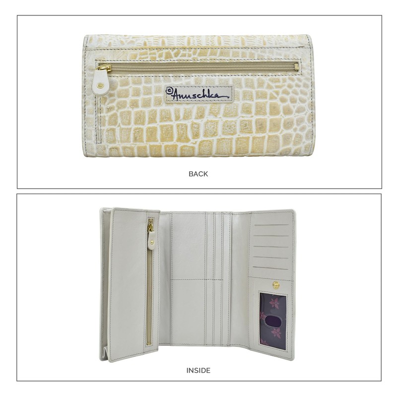 Anuschka Women’s Original Hand-Painted Genuine Leather RFID Blocking Three Fold Wallet, Croco Embossed Cream Gold, One Size