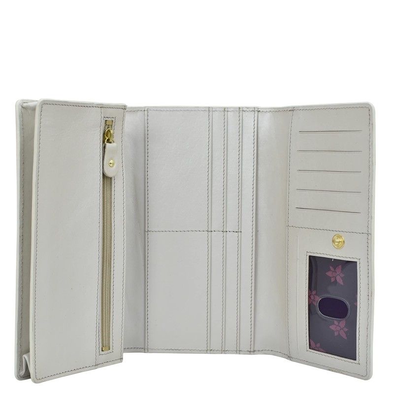- FUNCTIONAL DESIGN - Designed for both beauty and form, the wallet features a flap open entry with adjustable snap closure, 3 full-length slit and 2 zip pockets, 11 RFID card slots, 1 ID window, 1 gusset compartment, a rear zip pocket & slit pocket combo