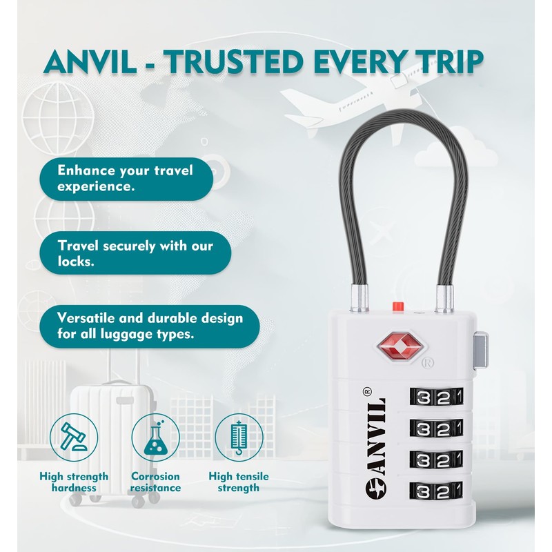 ANVIL 4 Digit Luggage Locks, TSA Locks for Luggage, Advanced TSA008 core, Alert Indicator for Your Travel Lock, Suitcase Lock.(4, White)