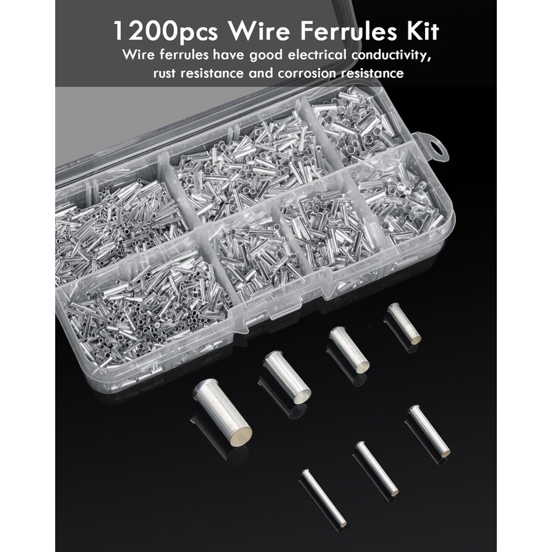 ANVINKU ANVINKU 1200 Stck Aderendhlsen Set, 7 Arten Unisoliert Aderendhlsen Sortiment, 10-22 AWG Unisolierte Aderendhlsen Set fr DIY elektrische Projekt (0,5/0,75/1/1,5/2,5/4,0/6,0mm2)