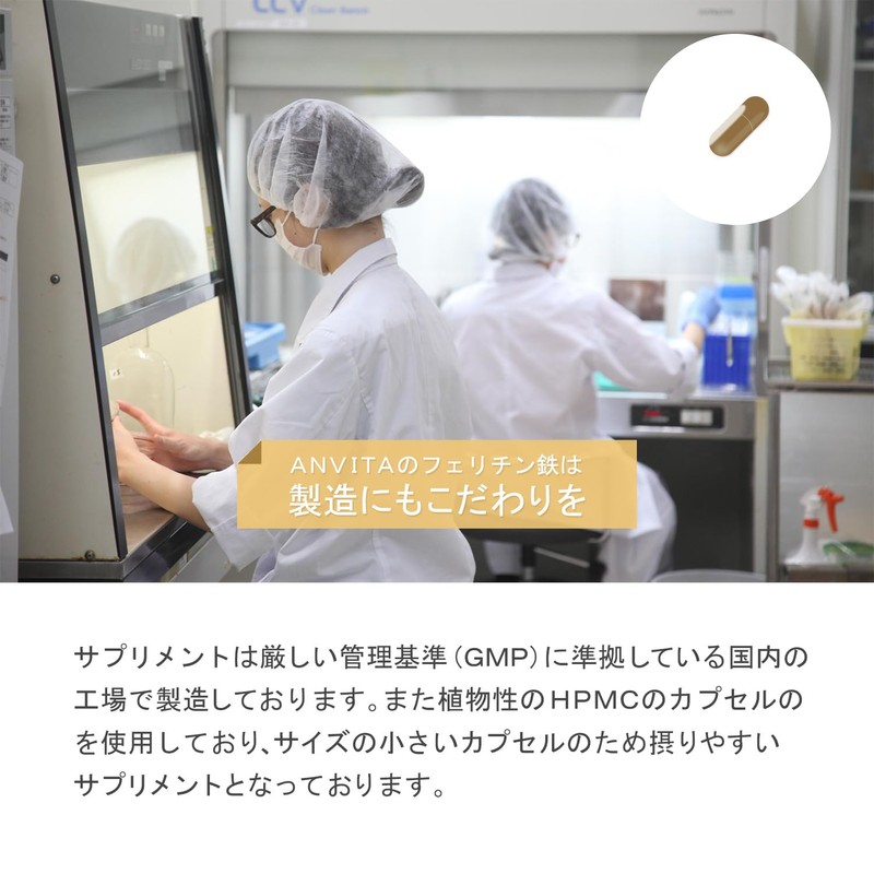 ANVITA(アンビータ)フェリチン鉄・貯蔵鉄、まめ鉄®、米国の有機認証:USDA オーガニック、大豆由来、10㎎/日 5mg×60粒 1ヵ月分